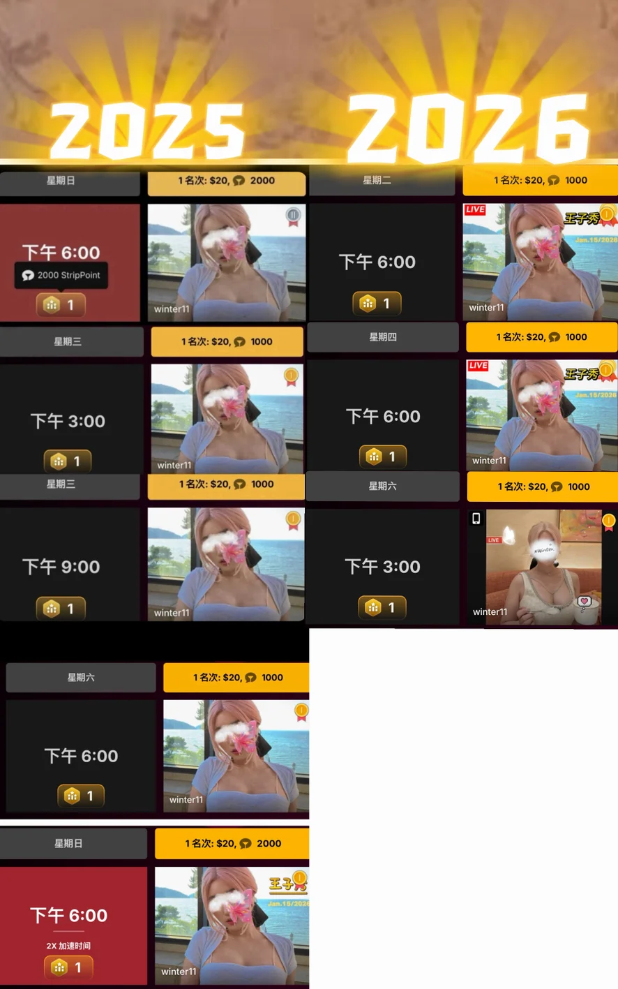 💘私信 经典 主页 视频 15min可挑选999
